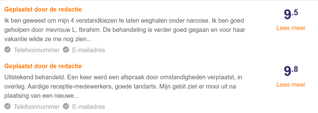 Onze patiënten beoordelen hun ervaringen met iSmile Tandartspraktijk ook op Zorgkaart Nederland. Hun feedback maakt het mogelijk dat we onze zorg blijven verbeteren. Wilt u ook uw ervaring delen? Laat gerust een beoordeling achter bij Zorgkaart Nederland!